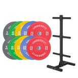 Zestaw obciążeń olimpijskich BUMPER COLOR 150 kg + stojak UNDERFIT