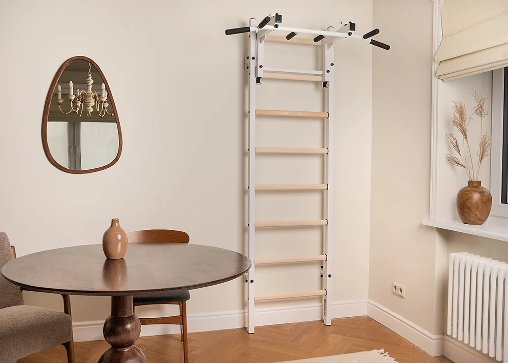 Drabinka gimnastyczna z metalowym drążkiem regulowanym biały BenchK
